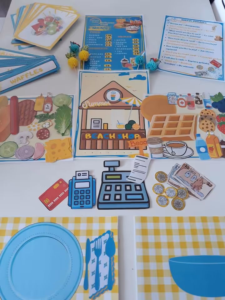 3. BEACH CAFE do wycięcia i zabawy Role Play - SPEAKING.