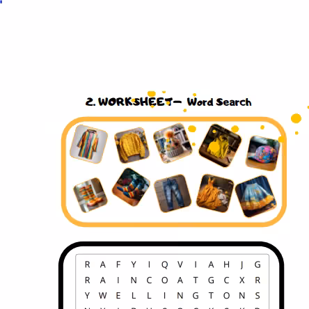 11. Worksheets: Is it..?, Word Search, I spy, Bracelets, Matching,