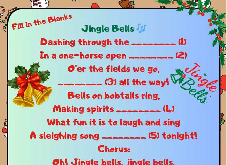 10. Jingle Bells, Last Christmas, Santa Claus Is Coming to Town - Gap-Fill exercise